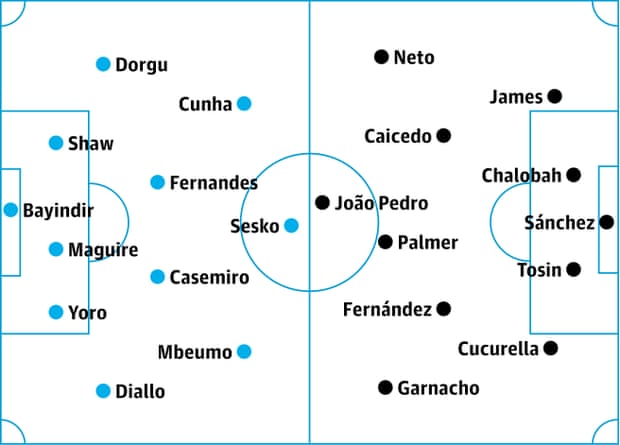 Бруну в центре против Челси, у которого Коул Палмер будет смещаться в нашу опорную (или стартанет в ней, если нам повезет) - звучит опасно. Очень опасно (несмотря на то, что пена и тренд твиттера). Но надеемся, что забьем больше.